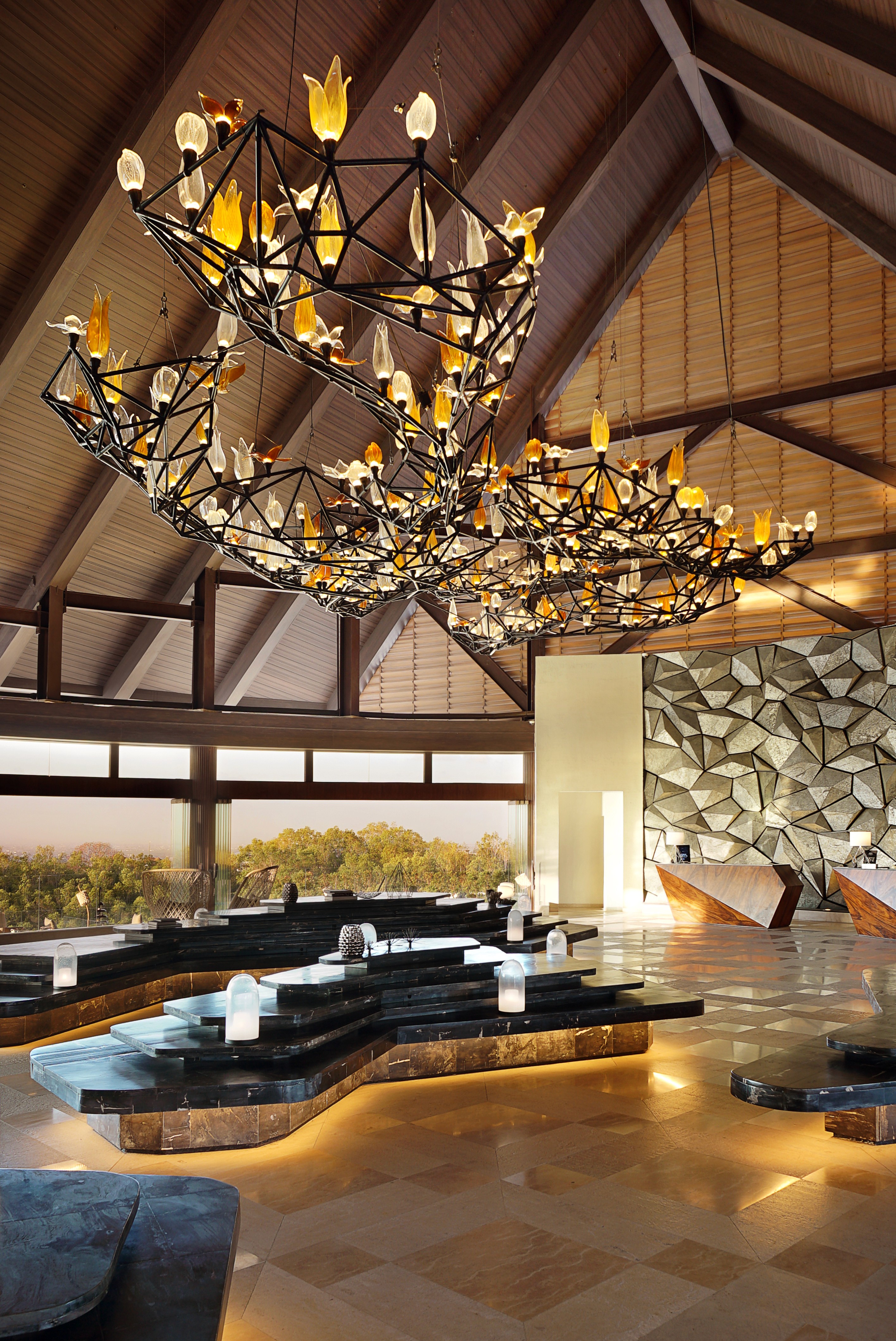 For the Lobby includes more then 300 petals handblown by our craftsman, The design is inspired by the Frangipani flowers which embrace devotion and purity.